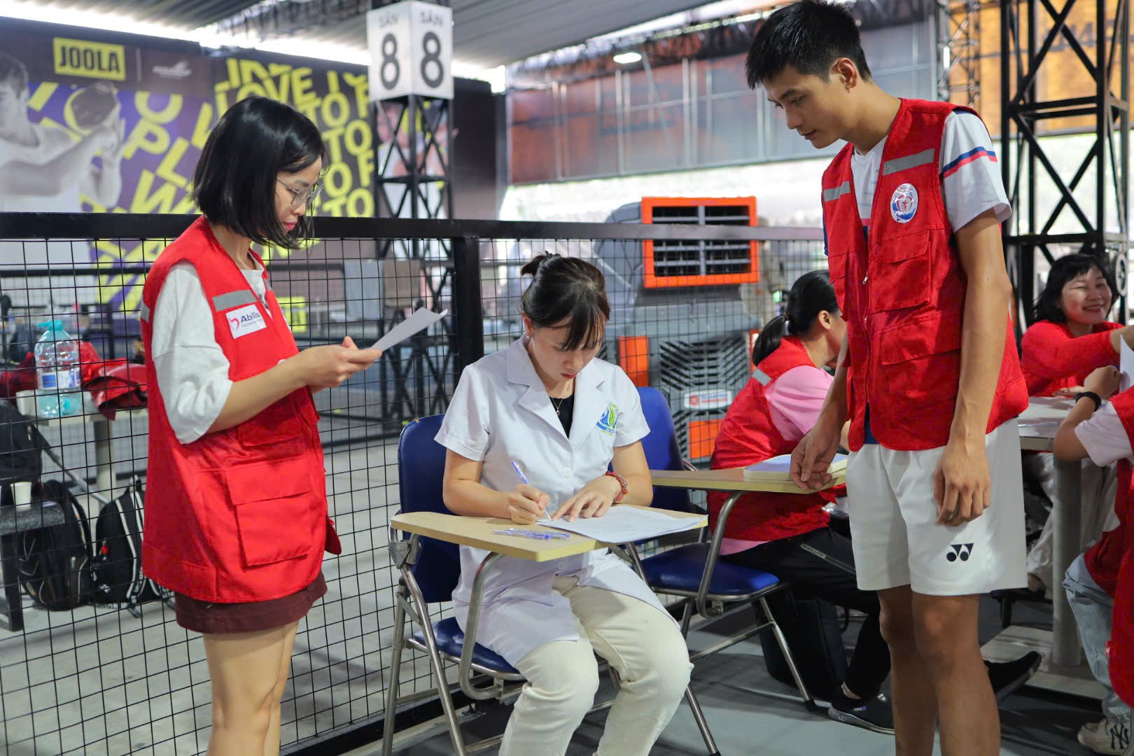 Bác sĩ đang phân loại thương tật cho vận động viên
