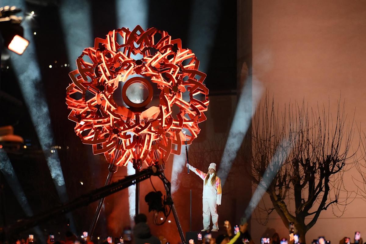 Sofia Goggia thắp sáng chiếc vạc được lắp đặt ở Quảng trường Dibona ở Cortina d'Ampezzo