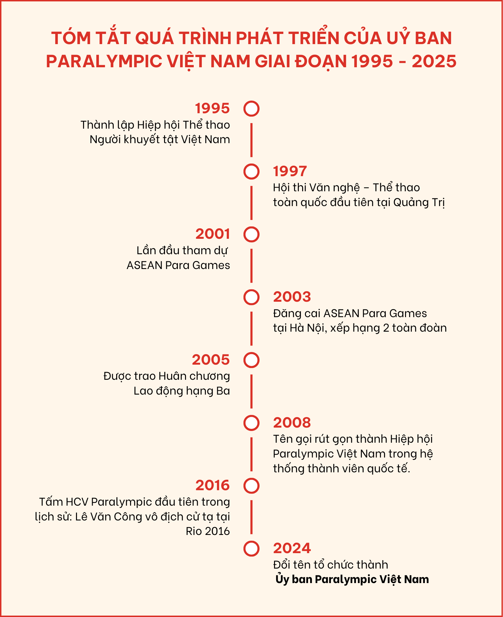 Tóm tắt quá trình phát triển của Ủy ban Paralympic Việt Nam giai đoạn 1995-2025