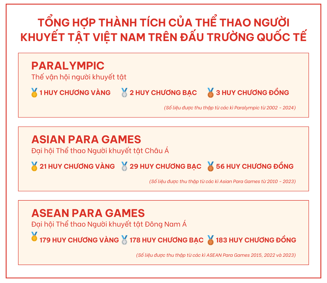 Tổng hợp thành tích của Thể thao Người khuyết tật Việt Nam trên đấu trường quốc tế