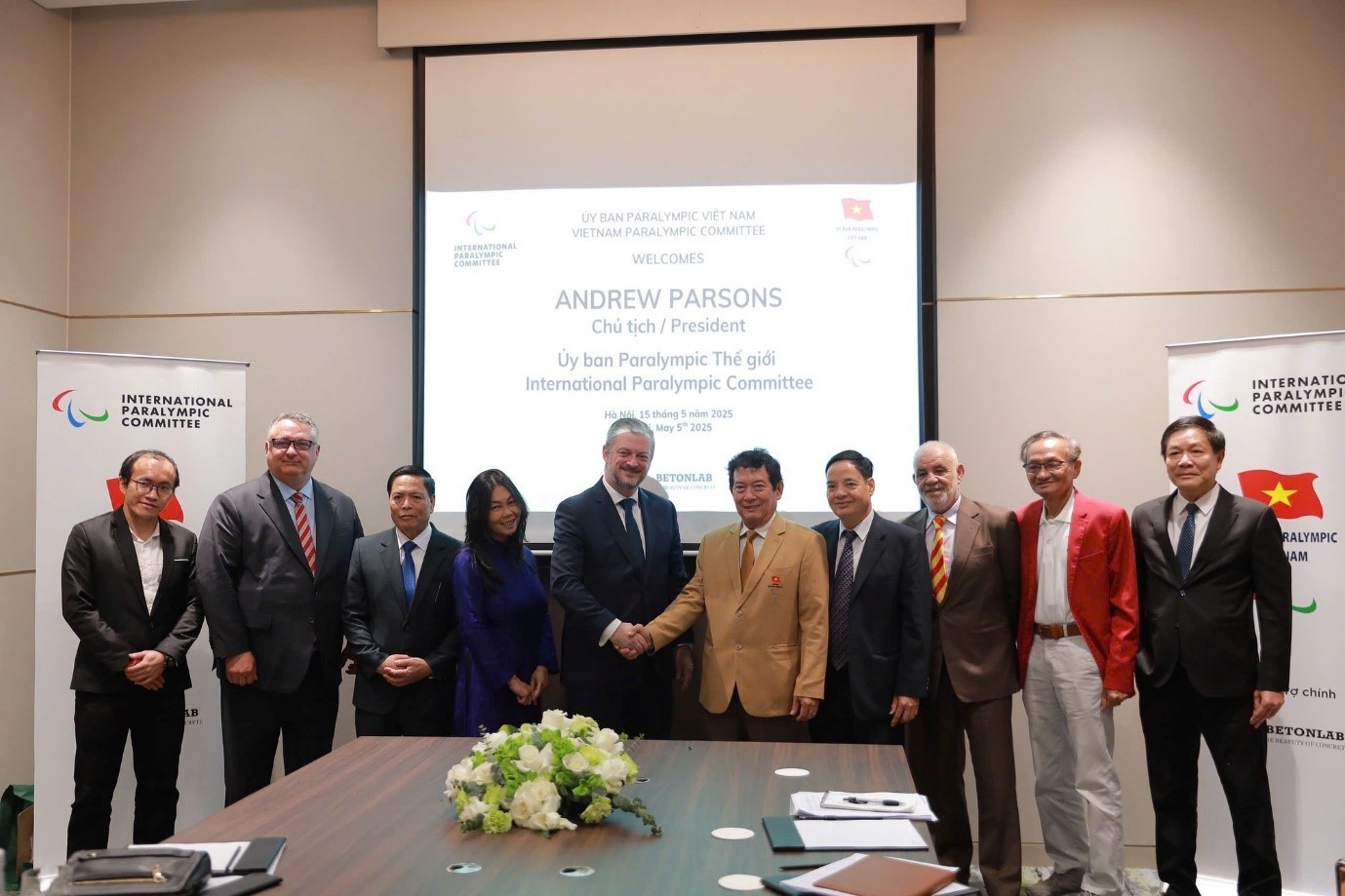 Chủ tịch Ủy ban Paralympic Quốc tế Andrew Parsons ghé thăm và làm việc tại Việt Nam tháng 5/2025. Ảnh: Minh Thư