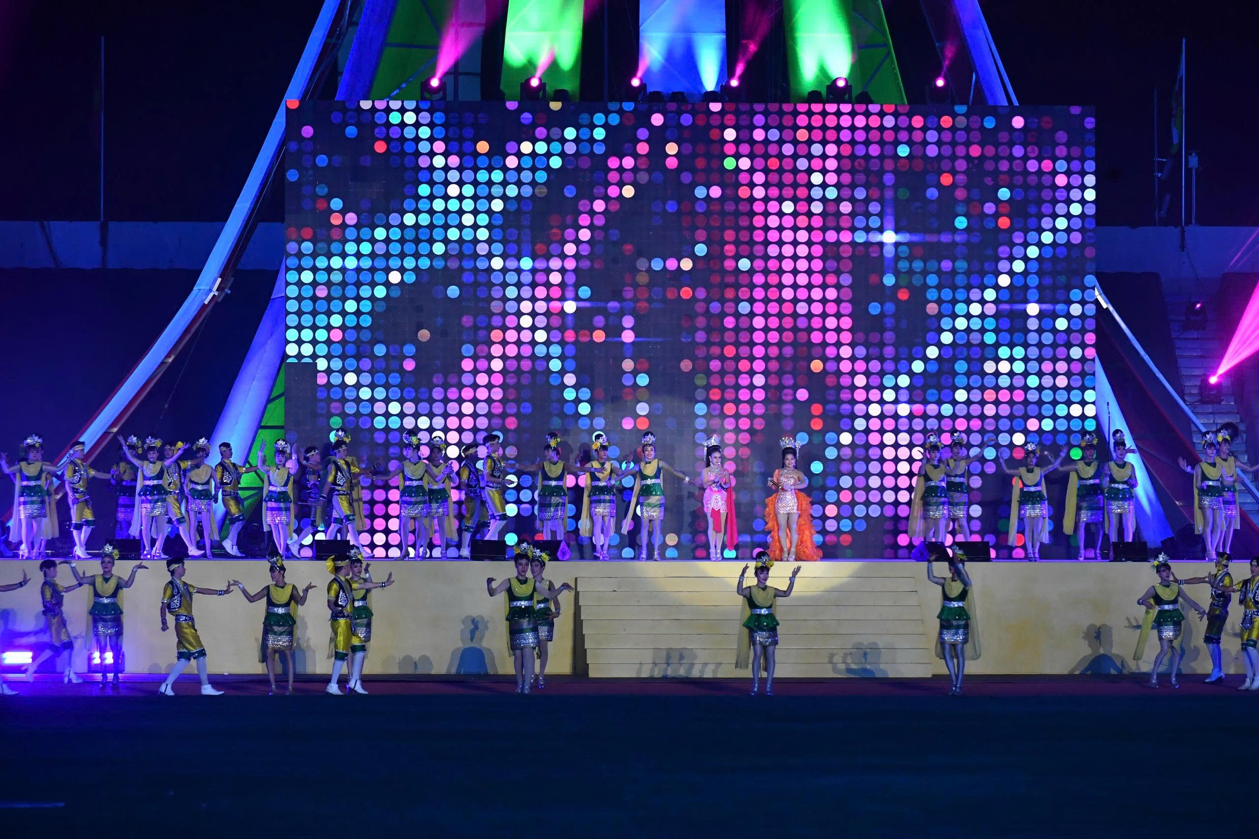 Màn trình diễn được dẫn dắt bởi Đoàn nghệ thuật Molam huyền thoại "Prathom Banthoeng Sin" đến từ tỉnh Khon Kaen. Với âm nhạc dân gian sôi động kết hợp cùng các yếu tố đương đại, họ đã mang đến bầu không khí vui vẻ đặc trưng của người dân vùng Đông Bắc Thái Lan, để lại ấn tượng sâu sắc trong lòng các vận động viên và khán giả khắp khu vực. Bên cạnh đó, buổi lễ còn có các tiết mục hòa nhạc và biểu diễn đặc sắc khác từ các nghệ sĩ hàng đầu, được thiết kế để phản ánh bản sắc của Thái Lan và cộng đồng ASEAN, đồng thời truyền tải thông điệp về sức mạnh của sự đoàn kết.