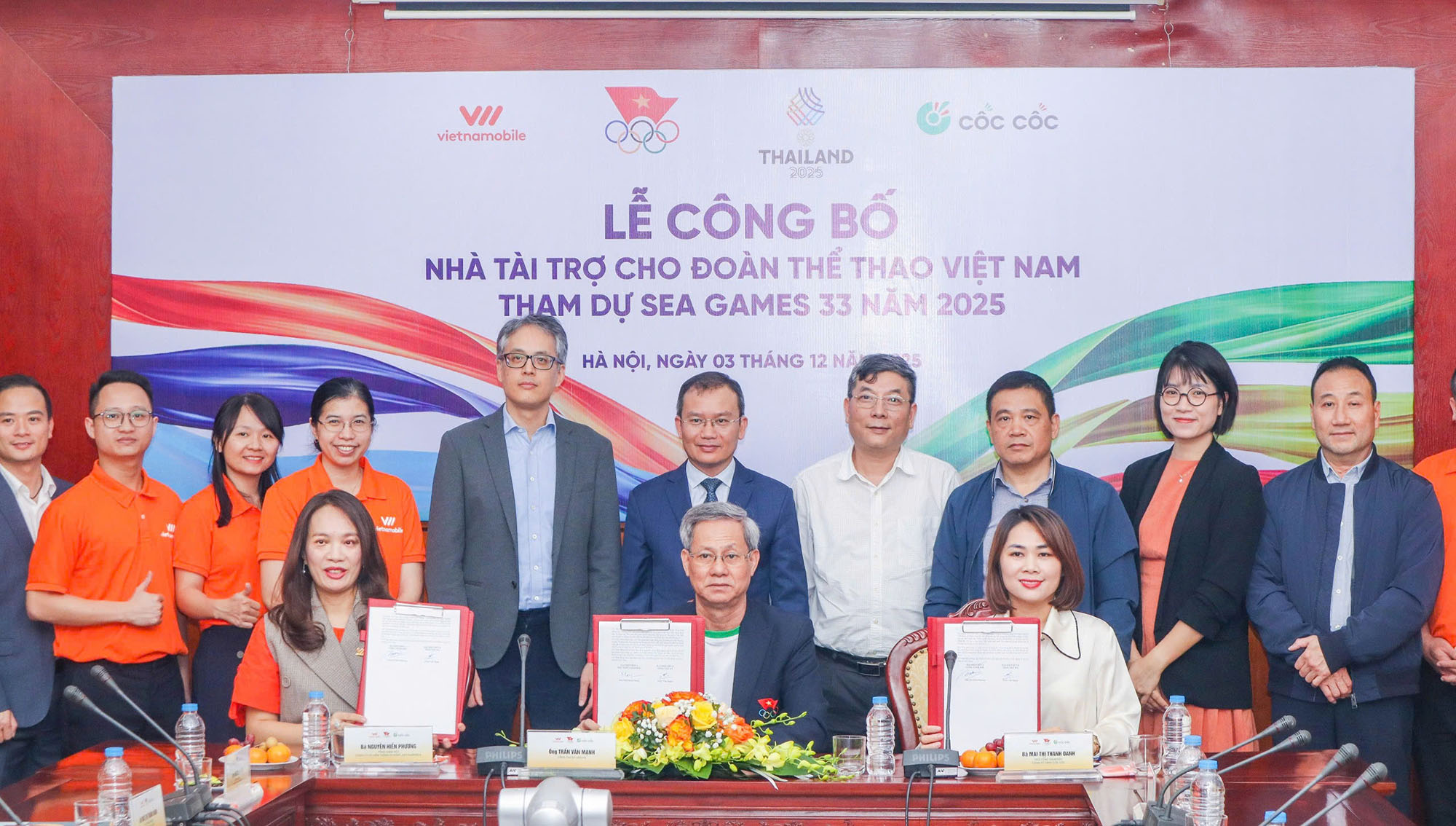 Chiều 3/12, Lễ công bố Nhà tài trợ cho Đoàn Thể thao Việt Nam tham dự SEA Games 33 đã được tổ chức. Theo đó, Công ty Cổ phần Viễn thông di động Vietnamobile và Công ty TNHH Cốc Cốc chính thức trở thành Nhà tài trợ của Đoàn Thể thao Việt Nam tại Đại hội.