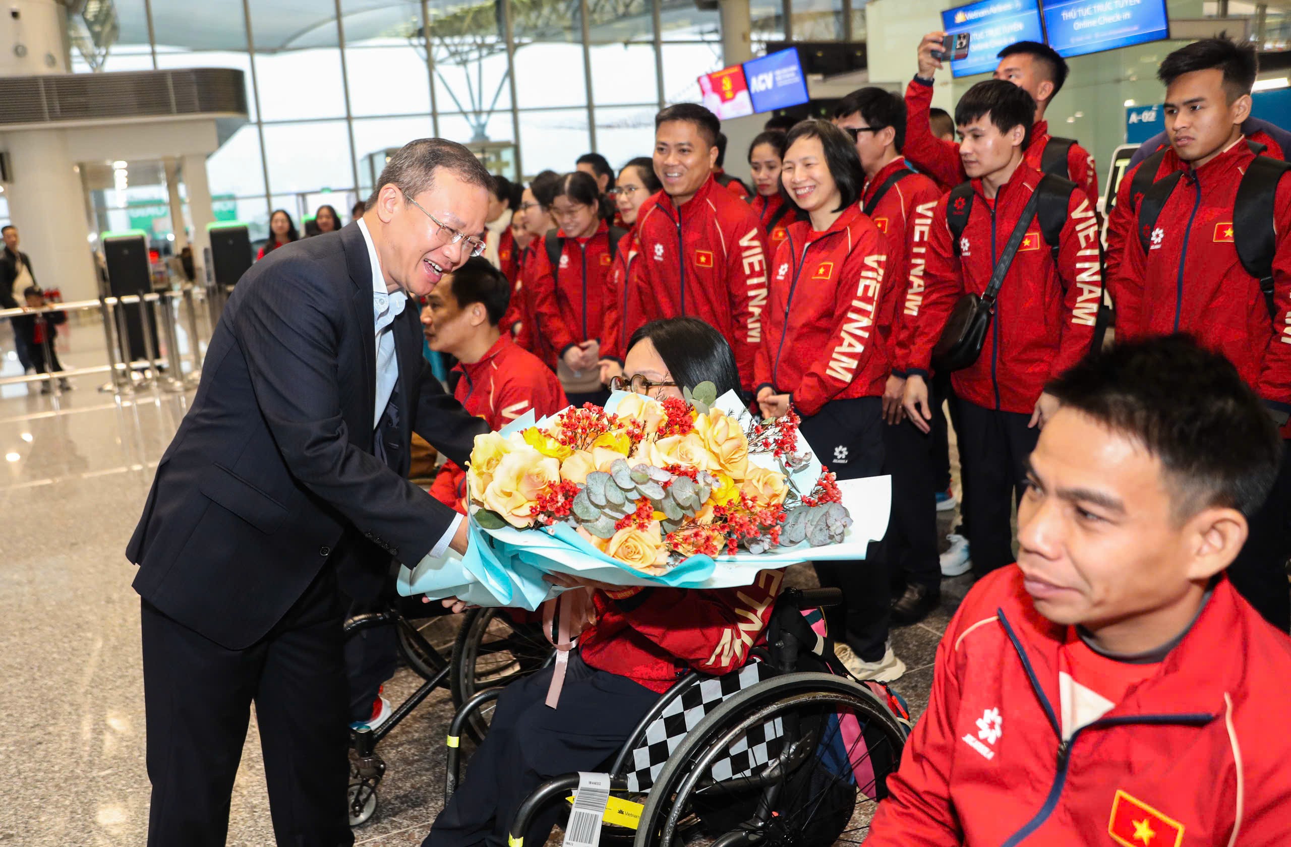 Ra tiễn đoàn tại sân bay quốc tế Nội Bài có: Cục trưởng Cục Thể dục thể thao Việt Nam Nguyễn Danh Hoàng Việt, Phó Cục trưởng Nguyễn Hồng Minh, đại diện các lãnh đạo Phòng Thể thao cho mọi người, Phòng Kế hoạch Tài chính, Phòng Tổ chức cán bộ, Văn phòng thuộc Cục Thể dục thể thao Việt Nam và Trưởng Ban Truyền thông Ủy ban Paralympic Việt Nam Phạm Thanh Cẩm.