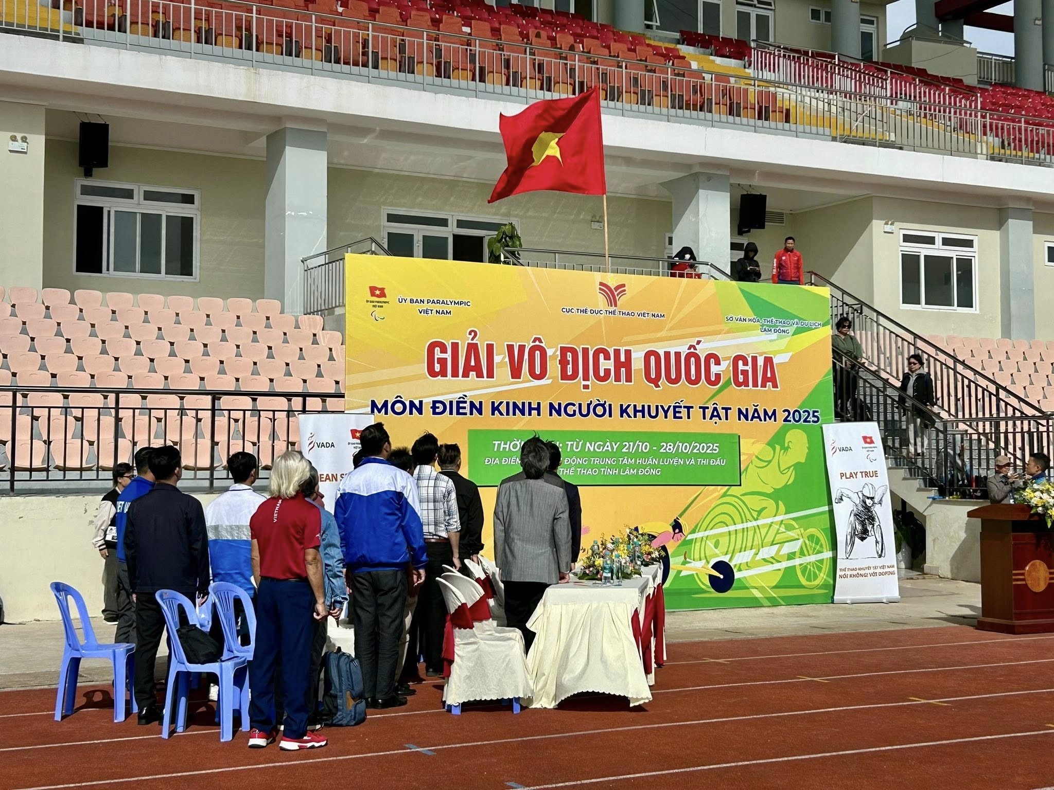 Sáng 24/10, bầu không khí sôi động và đầy cảm hứng bao trùm Sân vận động Trung tâm Huấn luyện và Thi đấu Thể dục thể thao tỉnh Lâm Đồng khi Giải vô địch quốc gia môn Điền kinh người khuyết tật năm 2025 chính thức khởi tranh. Giải đấu do Ủy ban Paralympic Việt Nam, Cục Thể dục thể thao Việt Nam phối hợp với Sở Văn hóa, Thể thao và Du lịch tỉnh Lâm Đồng tổ chức, quy tụ gần 300 vận động viên đến từ 14 tỉnh, thành trên cả nước.