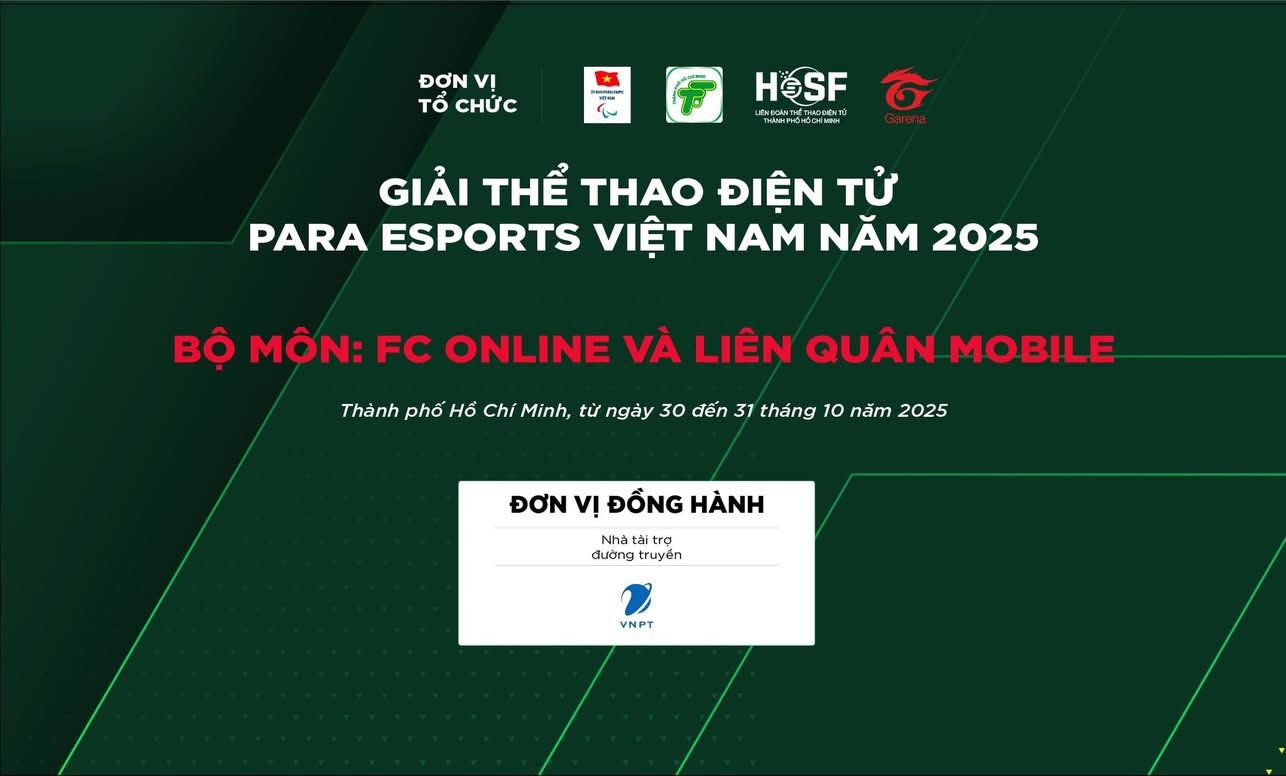 Ngày 30/10, Giải Thể thao Điện tử Para Esports Việt Nam 2025 chính thức khởi tranh tại Trung tâm Huấn luyện và Thi đấu Thể dục thể thao thành phố Hồ Chí Minh (số 2 Lê Đại Hành - phường Phú Thọ).