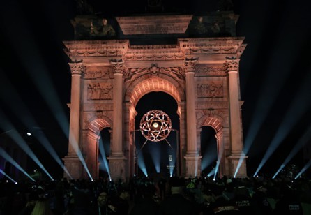 Ngọn lửa bùng cháy trên đài phun nước tại Arco della Pace ở Milan khi Thế vận hội Mùa đông Milan–Cortina d'Ampezzo 2026 khai mạc