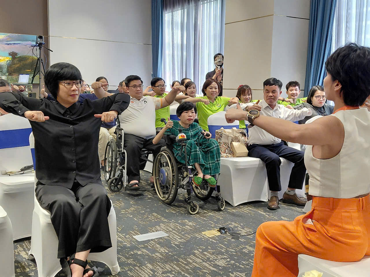 Bà Lương Thị Minh Nguyệt - Phó Giám đốc Trung tâm Giáo dục nghề nghiệp và Phát triển năng lực người khuyết tật Việt Nam, Ủy viên BCH Ủy ban Paralympic Việt Nam (áo xanh) - tham dự Hội thảo